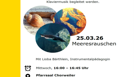 Bilderbuchkonzert Für Kinder von 3-6 Jahren mit ihren Eltern! Zum Zuhören, Mitsingen, Mitklatschen und Mitmachen! Spannende Geschichten, die mit Klaviermusik begleitet werden. Es gibt noch freie Plätze! Bitte kurze Anmeldung bei Doris D ...