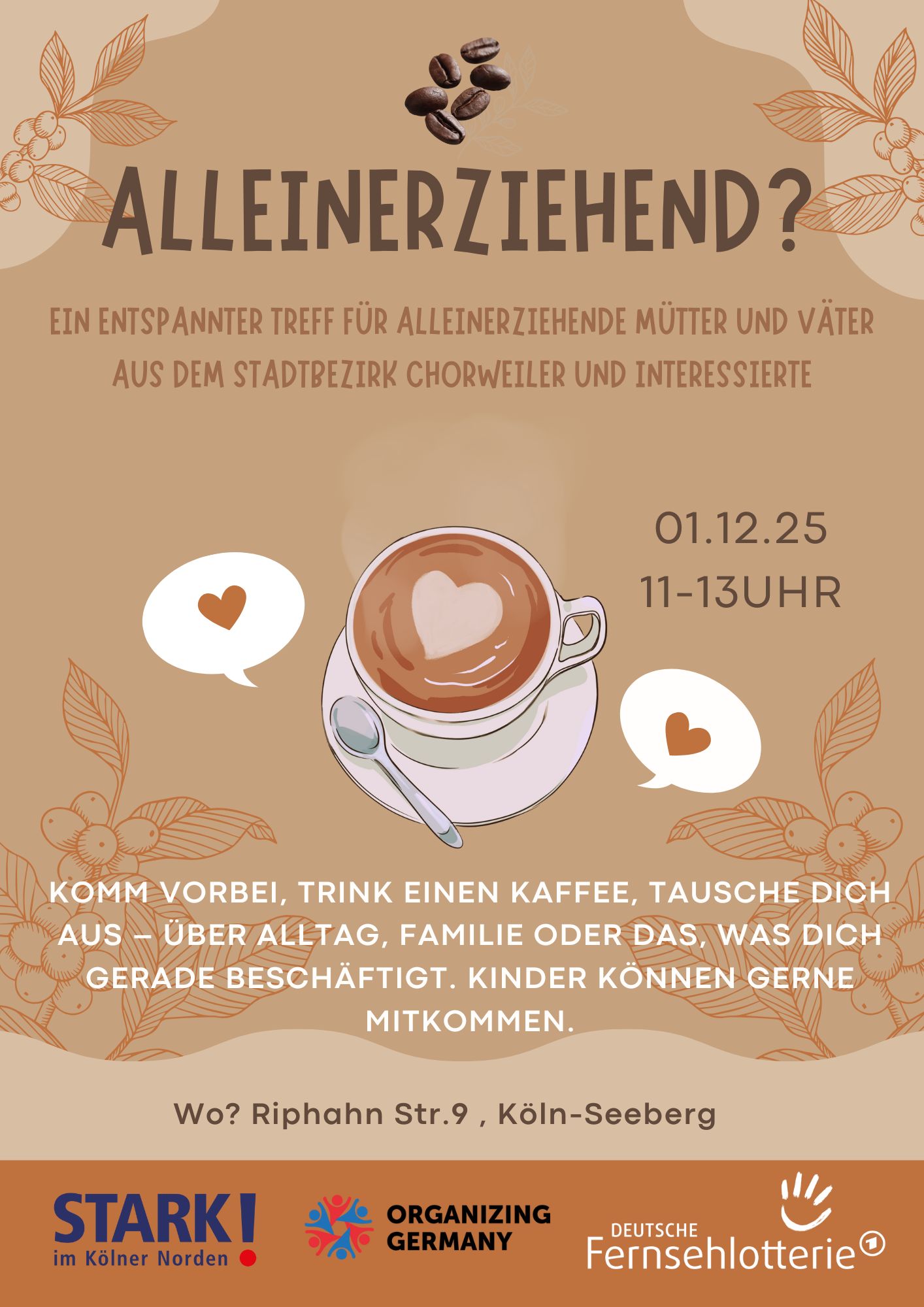 Einladung zum Kaffeetrinken für alleinerziehende Eltern bei Fundus e.V. am 1. Dezember 2025, 11-13 Uhr